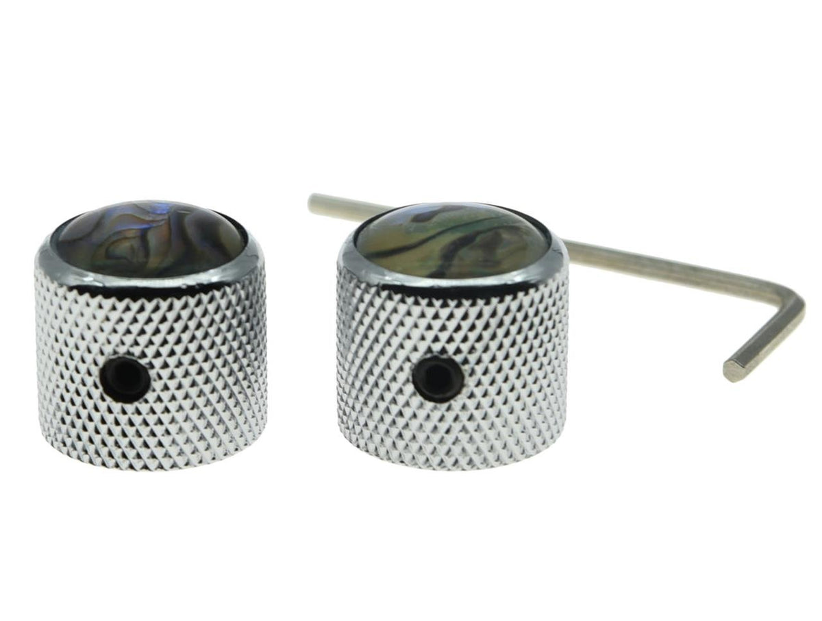 Dopro 2pcs Chrome Tele Telecaster Abalone Top Guitar Dome Knobs Bass Knobs with Set Screw and Wrench
