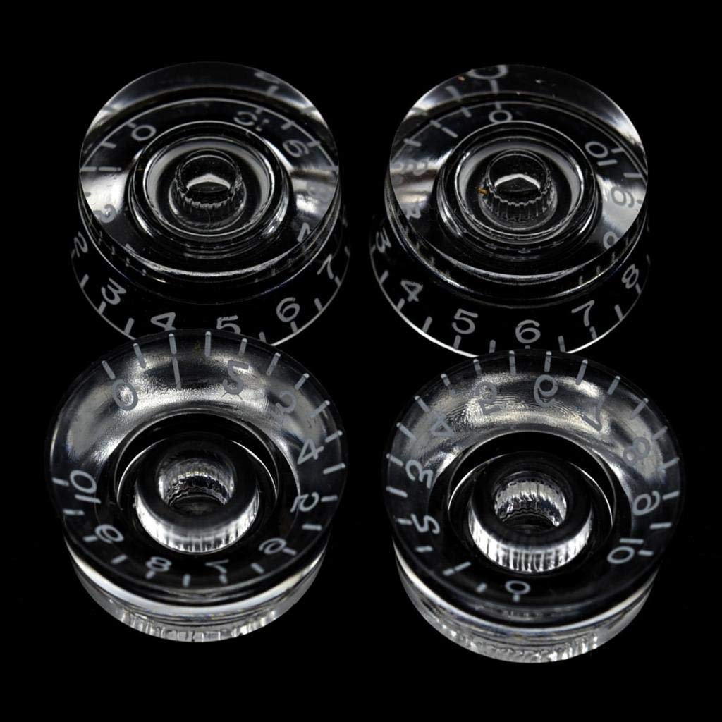 - Q: What is the design of the Dopro Speed Dial Knobs? A: The knobs have a clear finish with white numbers, providing a classic look that complements various guitar styles.