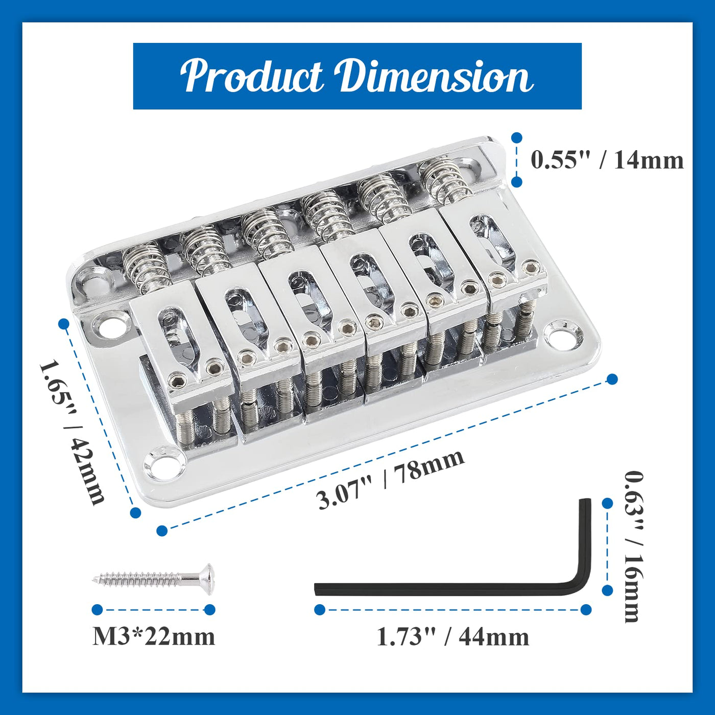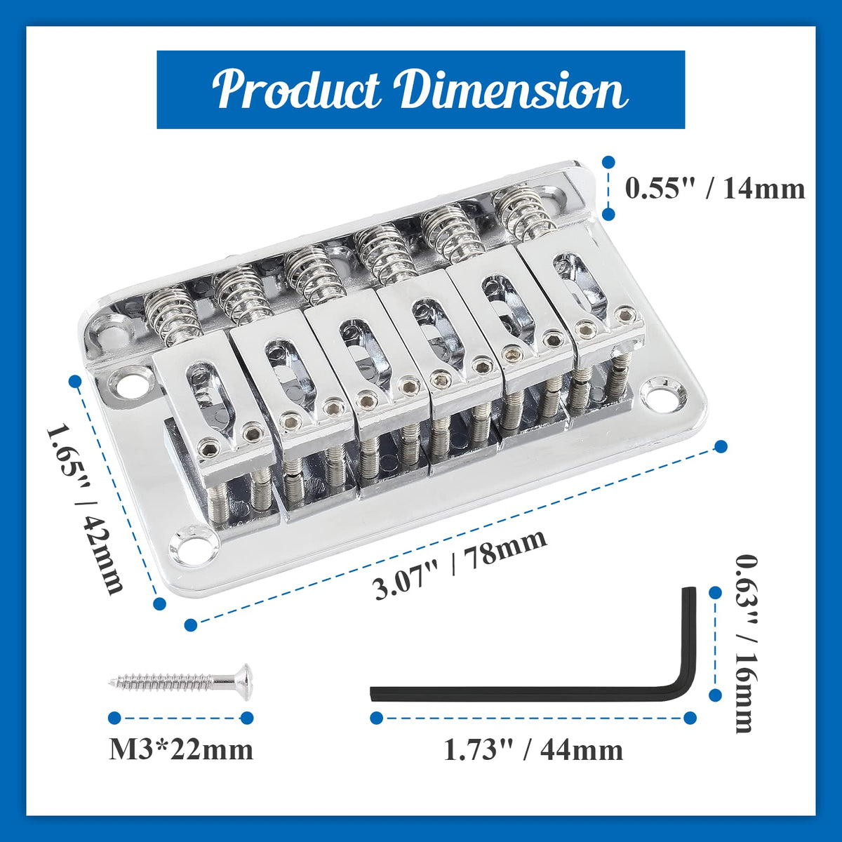 - Q: What are the dimensions of the HARSKIYER guitar bridge? A: The dimensions of the HARSKIYER guitar bridge are 3.07’’ x 1.65’’ x 0.55’’ (78 x 42 x 14 mm).