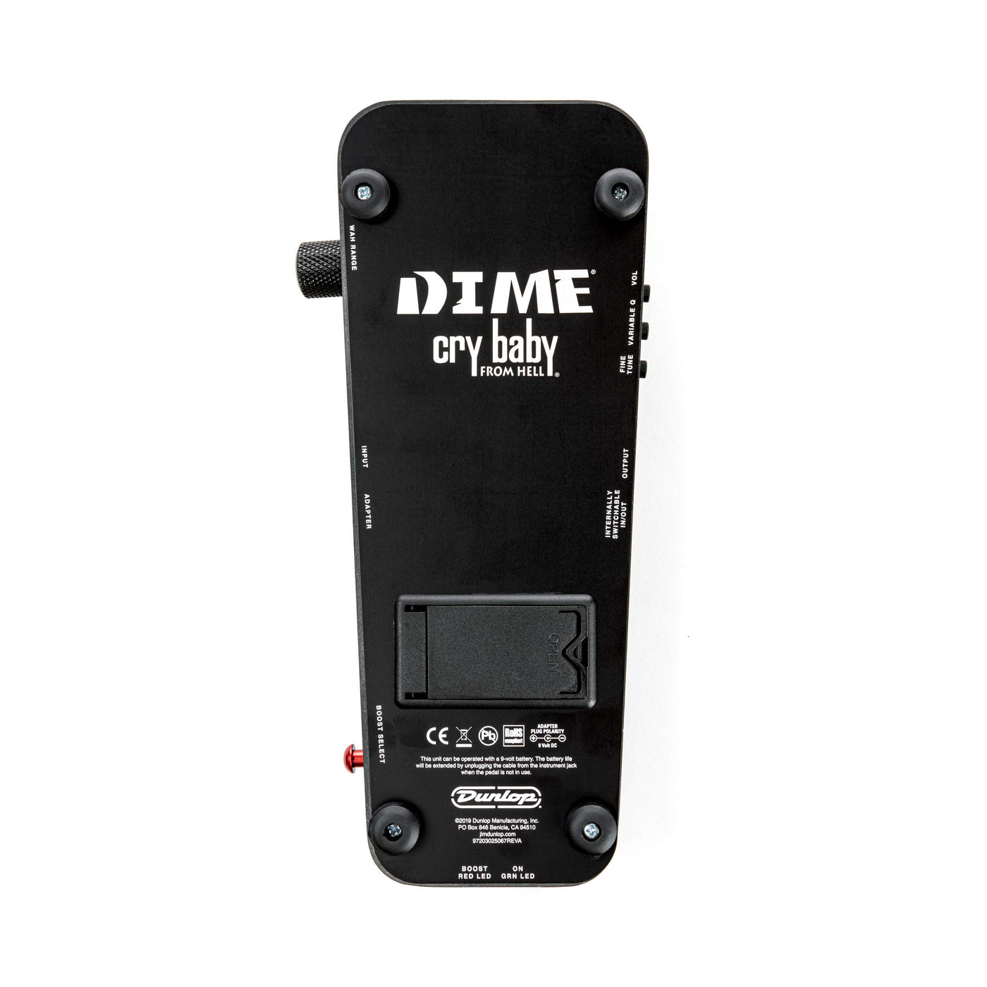 Dimebag Darrell combined a cowboy swagger with high-gain riffs and squealing pinch harmonic-laden leads. One of the most significant elements of his sound and dynamics was the Cry baby wah, and at a time when wah pedals had fallen out of fashion, Dime flew his wah flag high. Armed with his hard-earned expertise and insight from years of touring, he helped us devise the most versatile wah in our lineup: the Dime Cry baby from Hell wah. Work on this pedal first began some 20 years ago when Dime, a long-time user of the super customizable Cry baby 535Q multi-wah, wanted even more freedom when setting up his rig on stage. Starting with the 535Q, we carried over its Q control, 6-way range selector, and adjustable kick-in boost. Next, we hot-rodded it with a wide sweep range for Dime to dig deep and fly high, A control to adjust the pedals toe-down frequency, an extra output for splitting your signal to a separate FX chain, and back-mounted LED indicators to conveniently show whether the wah is on and whether the boost is engaged. Finally, we replaced the standard rubber tread with skateboard skid tape so that your foot doesnt slip on any spilled beverages. The Dime Cry baby from Hell wah is the ultimate wah pedal for your touring rig, and with its new black Camo finish, itll have you wearing a black-toothed grin in no time.