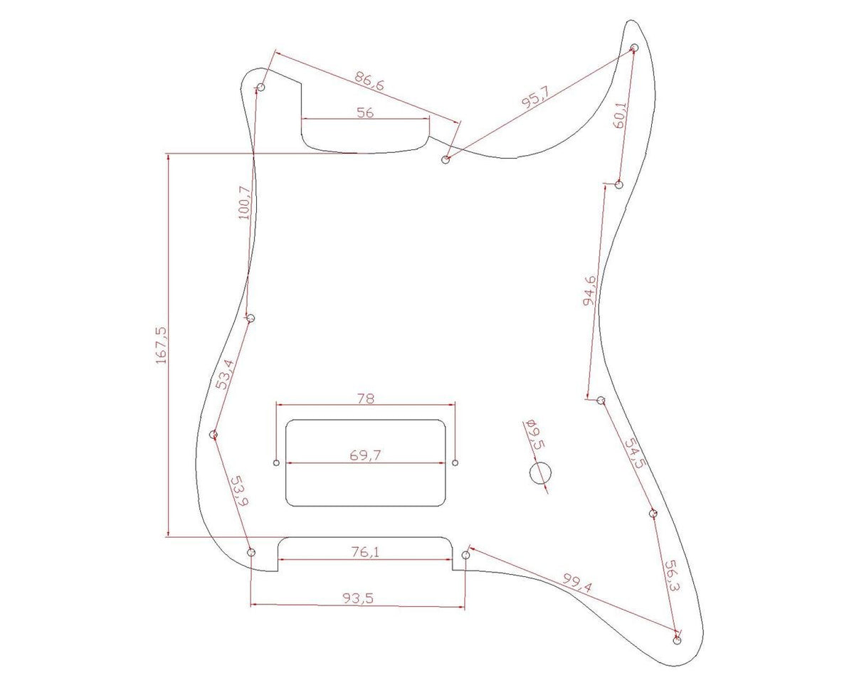 - Q: What type of pickups does this pickguard accommodate? A: The pickguard is designed to fit one humbucker pickup and includes one pot hole.