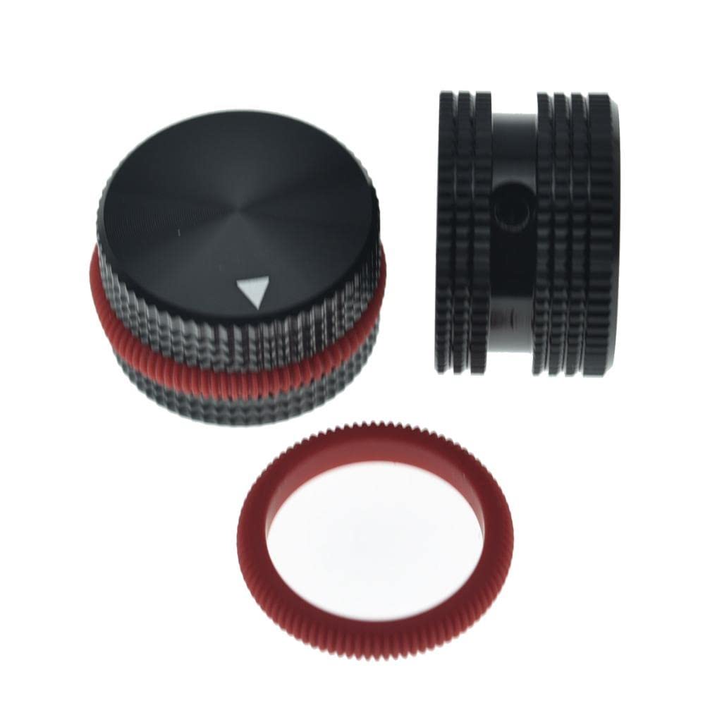 KAISH 2pcs 6364(25mm)Diam Aluminium Potentiometer Knobs 14 Universal Pot Knobs with Rubber o-ring and Indicator for guitarBassAMP Amplifier Black with Red Ring