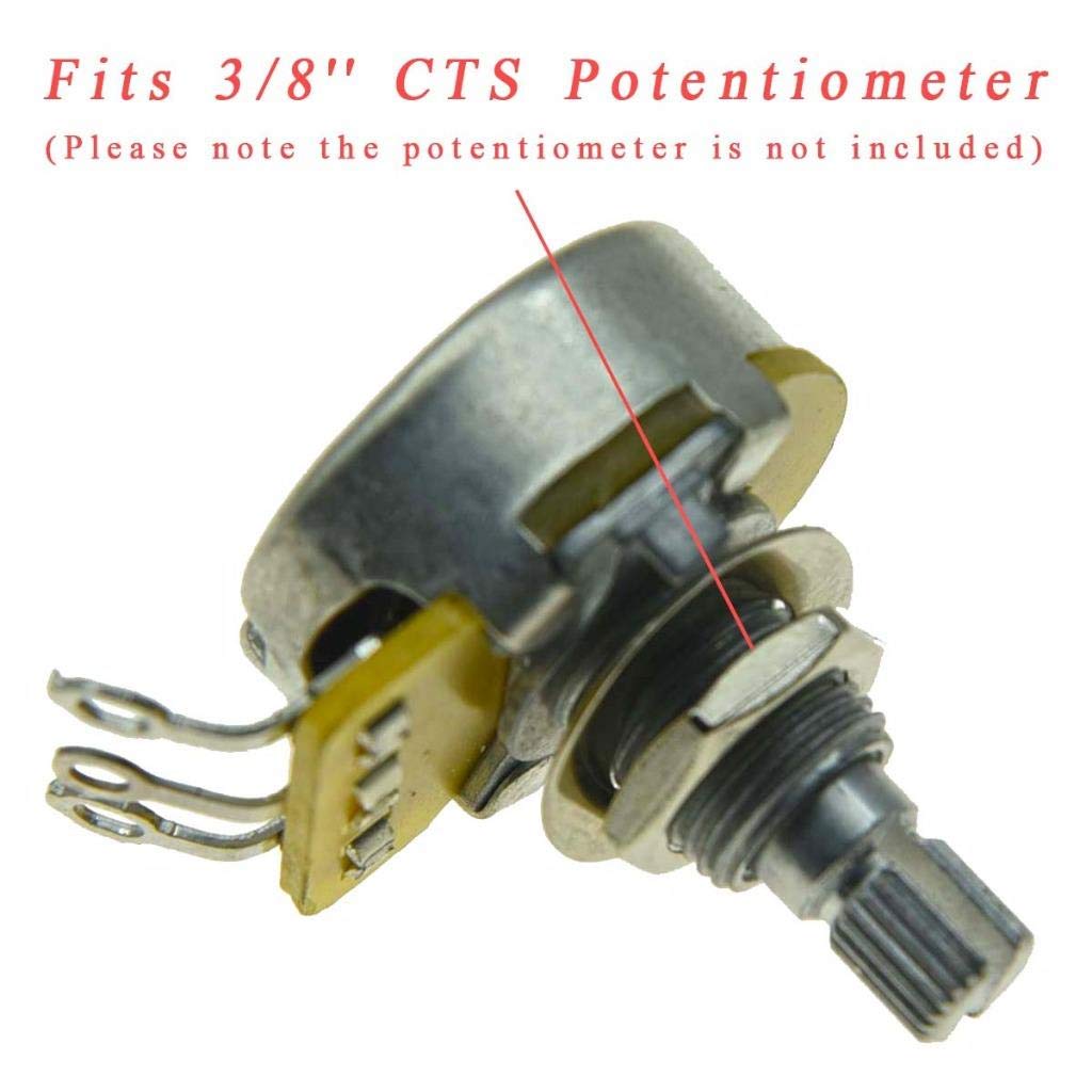- Q: What type of guitar pots do these nuts fit? A: These nuts are designed specifically for US Thread 3/8" guitar pots, particularly CTS pots and Switchcraft jacks. They do not fit metric pots or other sizes.