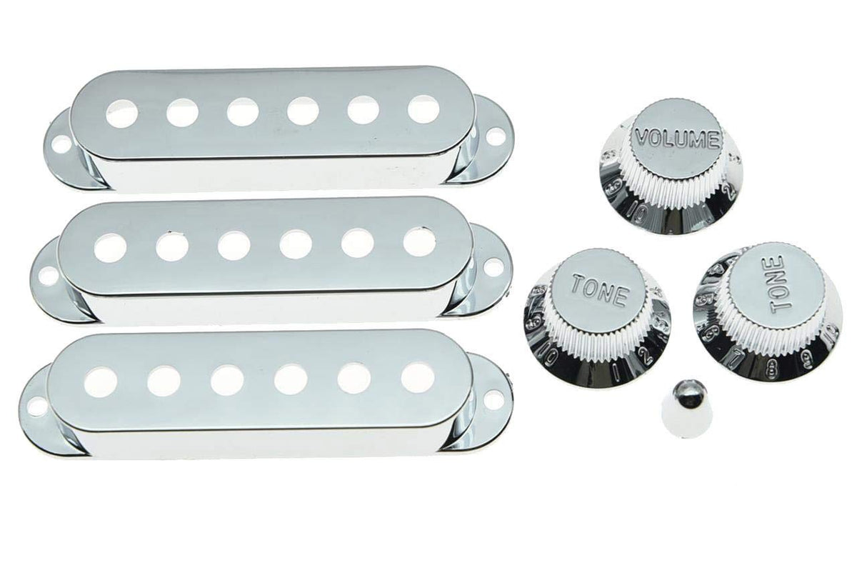 KAISH Chrome Plastic ST Strat 52mm Pole Spacing Pickup Covers Guitar Knobs and 5 Way Switch Tip for USA Stratocaster/Strat