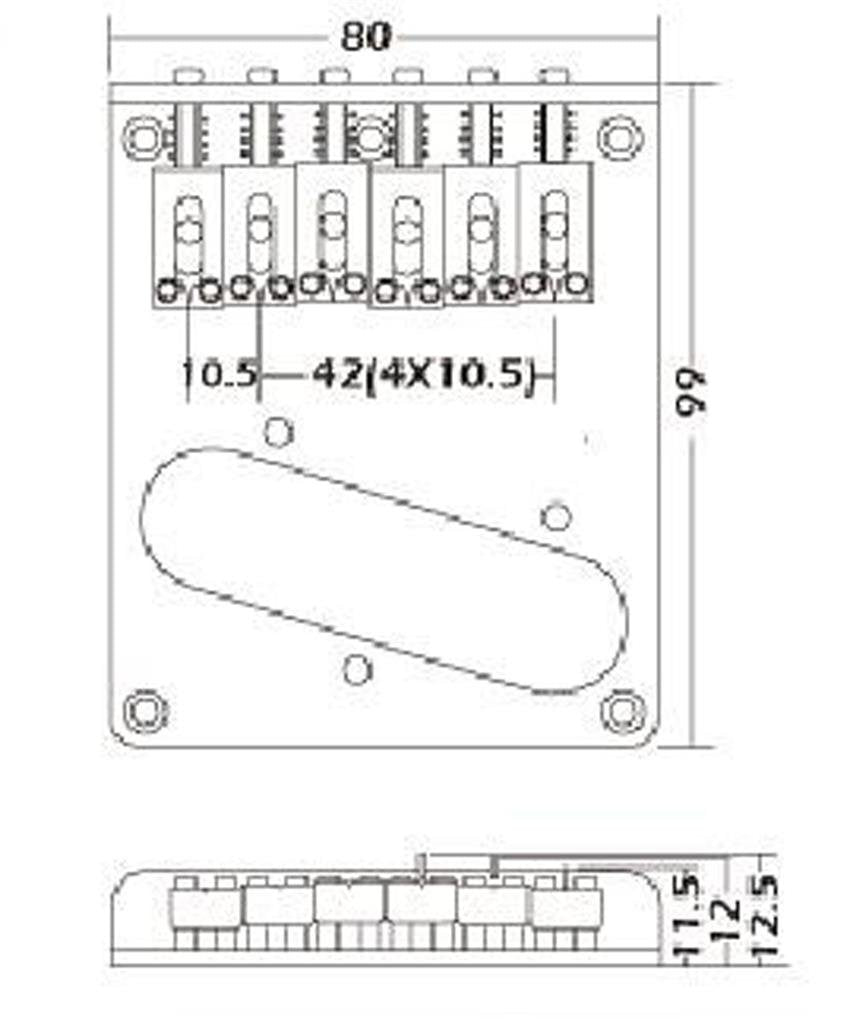 • Q: What are the dimensions of the KAISH Chrome Tele Bridge? A: The string spacing of the KAISH Chrome Tele Bridge is 10.5mm. It is advisable to check the dimension photo provided to ensure compatibility with your guitar model before purchasing.