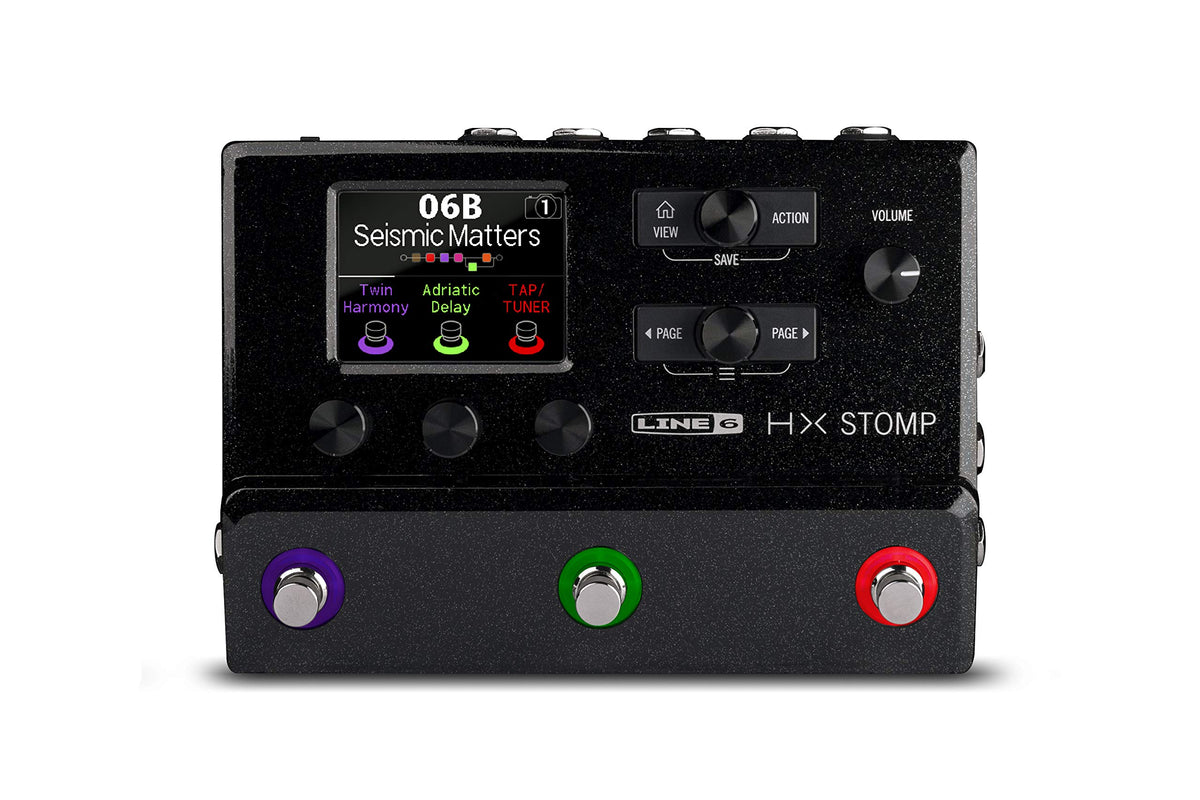 HX Stomp is a professional-grade multi-effects processor that delivers the sound of Helix amps, cabs, and effects in an ultra-compact pedal. Use it as a super stompbox, a backup or travel rig, an add-on tone expander when combined with other modelers, an audio interface-or even a complete guitar or bass rig. The same HX Modeling technology that powers the flagship Helix guitar processor enables HX Stomp to run up to six processing blocks simultaneously, making it the most powerful and flexible stompbox-sized multi-effects processor available. HX Stomp is easy to operate, however, thanks to its simple-but-powerful controls, 320 x 240-pixel color LCD, and capacitive-sensing footswitches with color-coded LED rings. External control via MIDI and optional expression pedal and footswitch control provide additional flexibility, as does I/O that may be configured for sophisticated routing such as simultaneously feeding an amp and a FOH mixer, 4-cable method operation with an amplifier, and studio re-amping. Along with 300+ Helix amps, cabs, and effects-even a looper-HX Stomp includes a legacy library of effects from Line 6 M-Series pedals, as well as from classic Line 6 stompbox modelers such as the DL4, MM4, FM4, and DM4. There are also presets created specifically for bass players, as well as individual bass amp and cab models. The free HX Edit app offers preset librarian functionality and third-party IR loading.