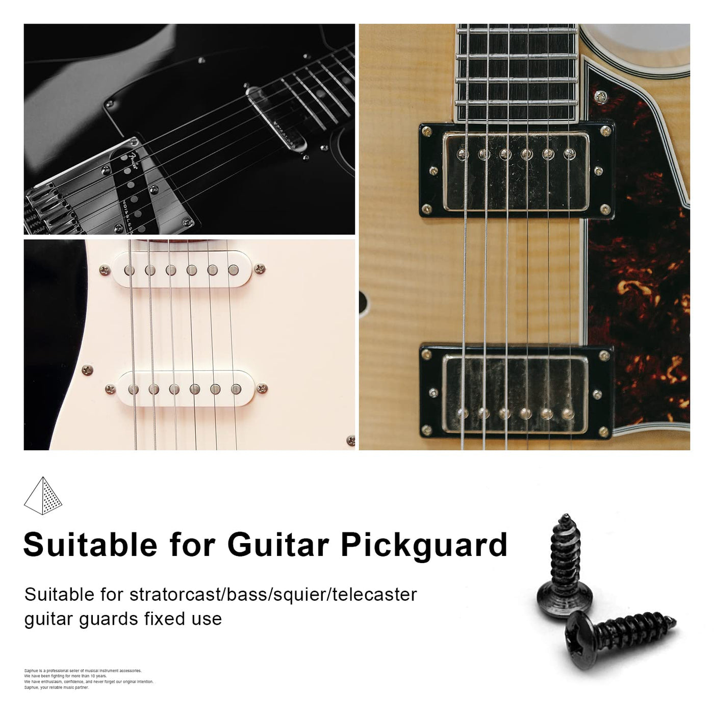 • Q: Is this product suitable for mounting guitar guards? A: Yes, these screws are specifically designed for mounting electric guitar guard plates.