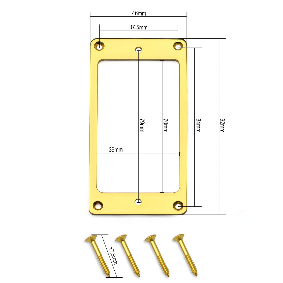 • Q: What are the dimensions of the MAXCHEER Metal Iron Flat Humbucker Pickup Rings? A: The outer frame dimensions are approximately 92x46mm (3.6 x 1.8 inches) and the inner frame dimensions are approximately 70x39mm (2.7 x 1.5 inches).