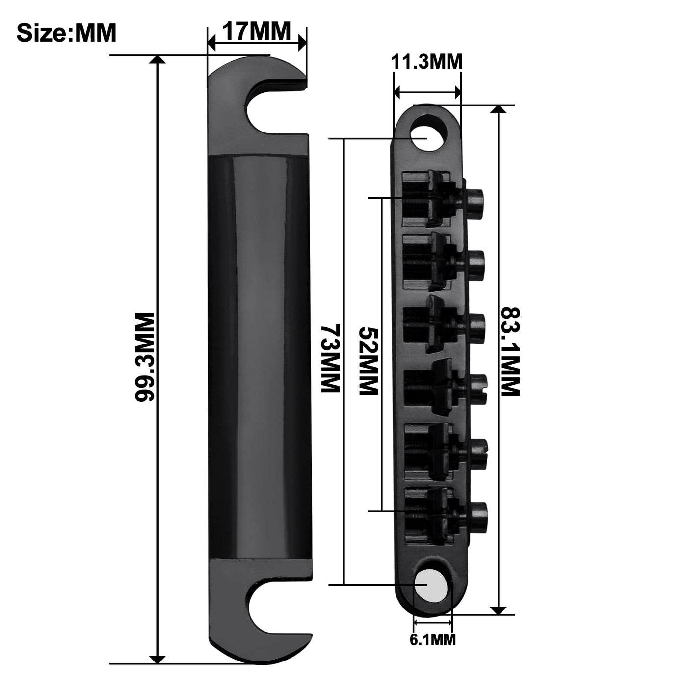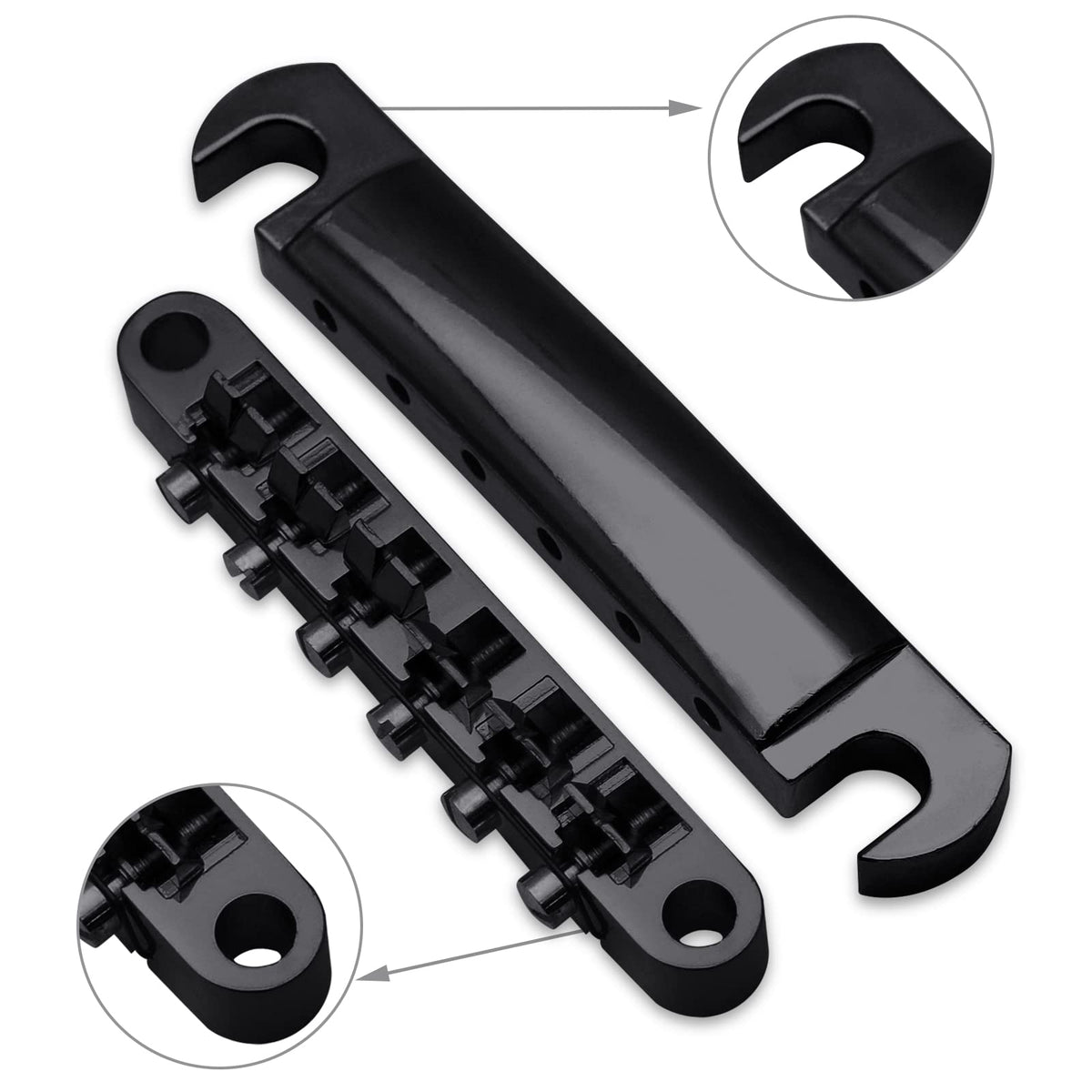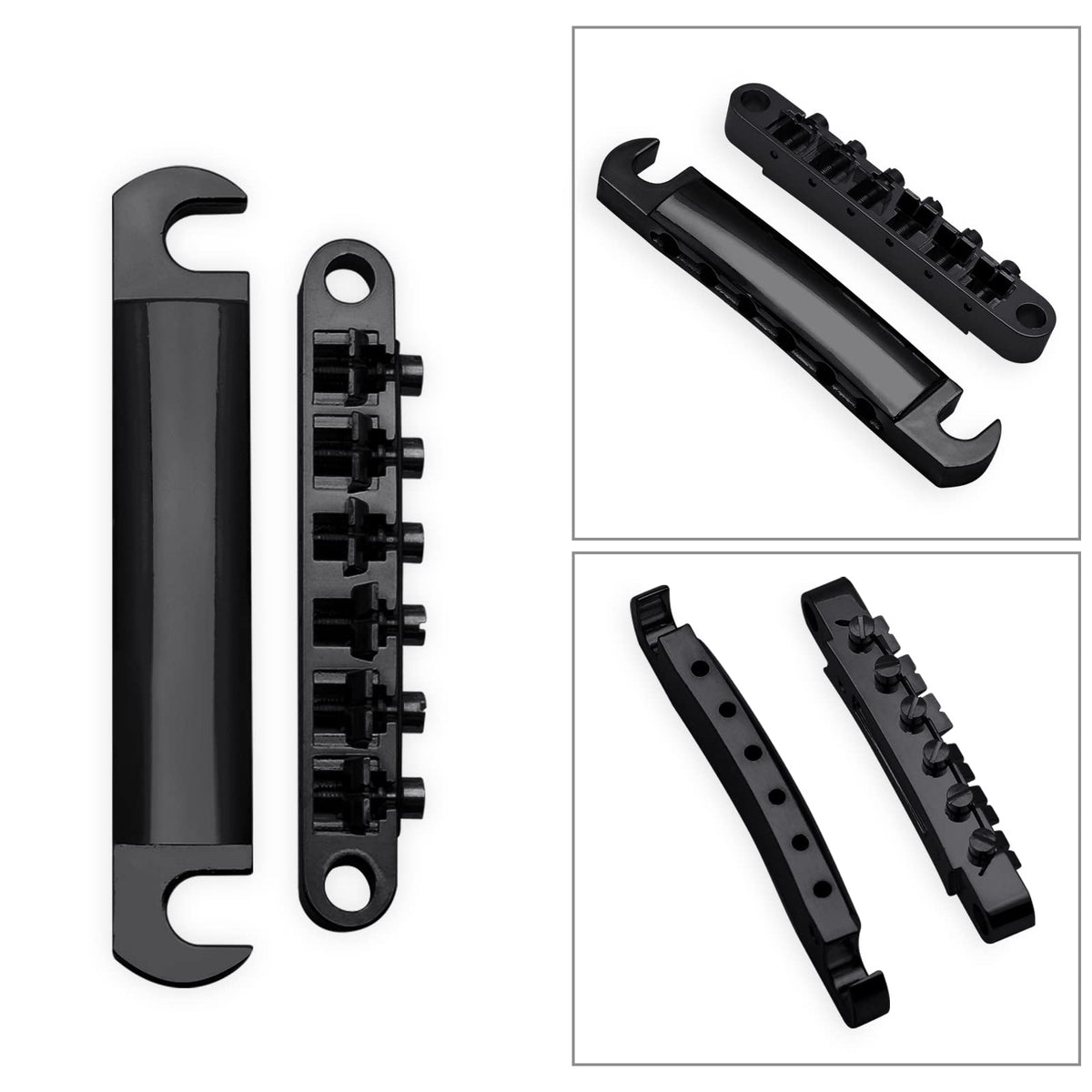 MAXCHEER A Set of String Saddle Tune-O-Matic Bridge & Tailpiece For GB LP Style Electric Guitar (Black)