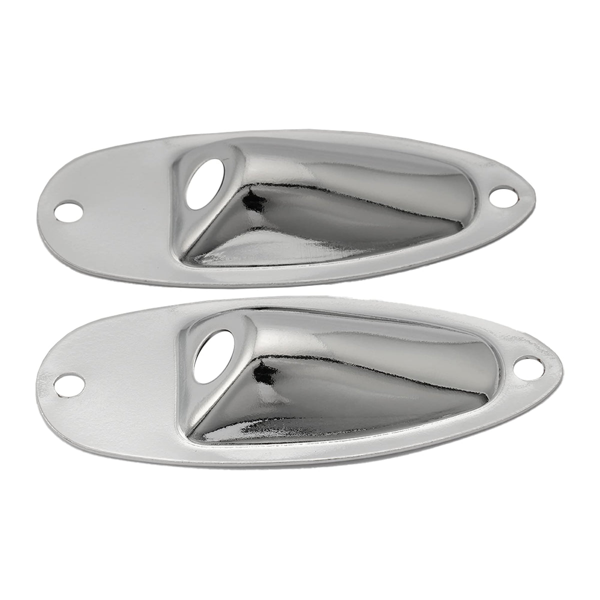 Musiclily Boat Style Strat Jack Plate for Fender Stratocaster Electric Guitar Replacement, Chrome(Pack of 2)