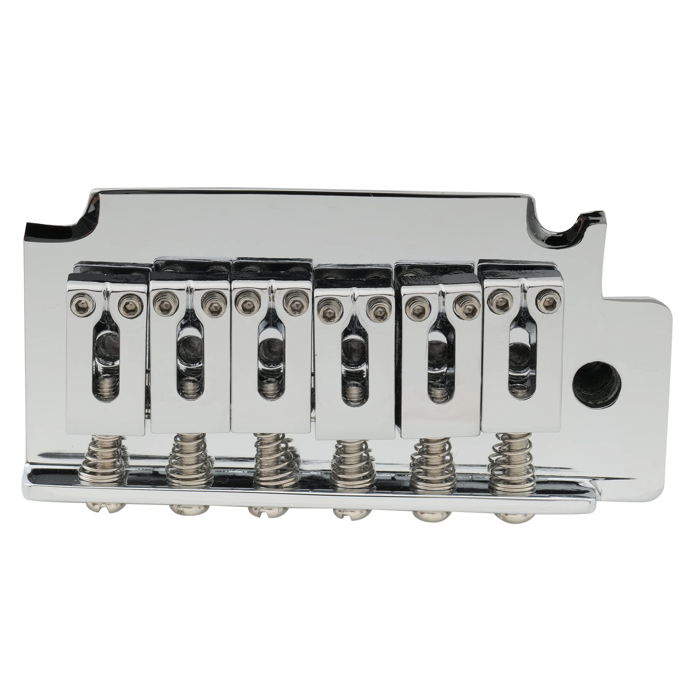 • Q: What materials are used in the construction of this tremolo bridge? A: The tremolo bridge features modern style zinc saddles and a standard thin zinc block, designed for durability and performance.