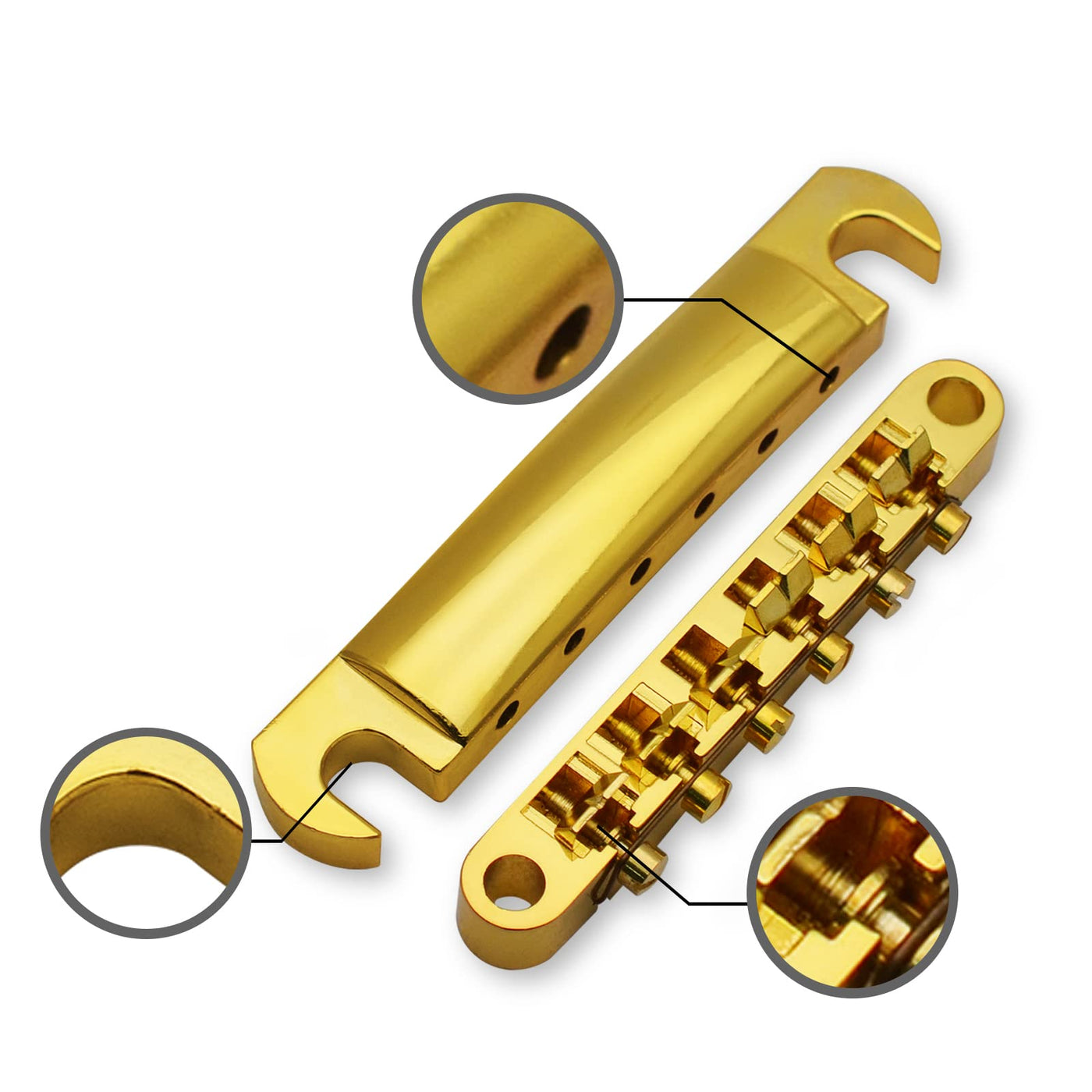 SAPHUE A Set of String Saddle Tune-O-Matic Bridge and Tailpiece with Studs for GB LP Style Electric Guitar (Gold)