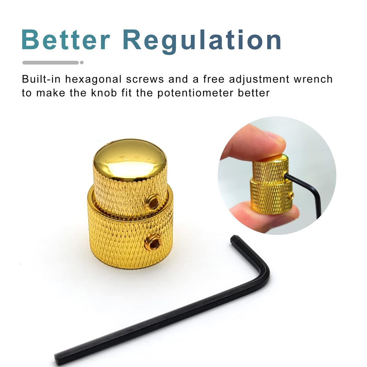 • Q: Are these knobs easy to install? A: Yes, the knobs are designed for easy installation, and the included wrench assists with securing them onto the guitar or bass.