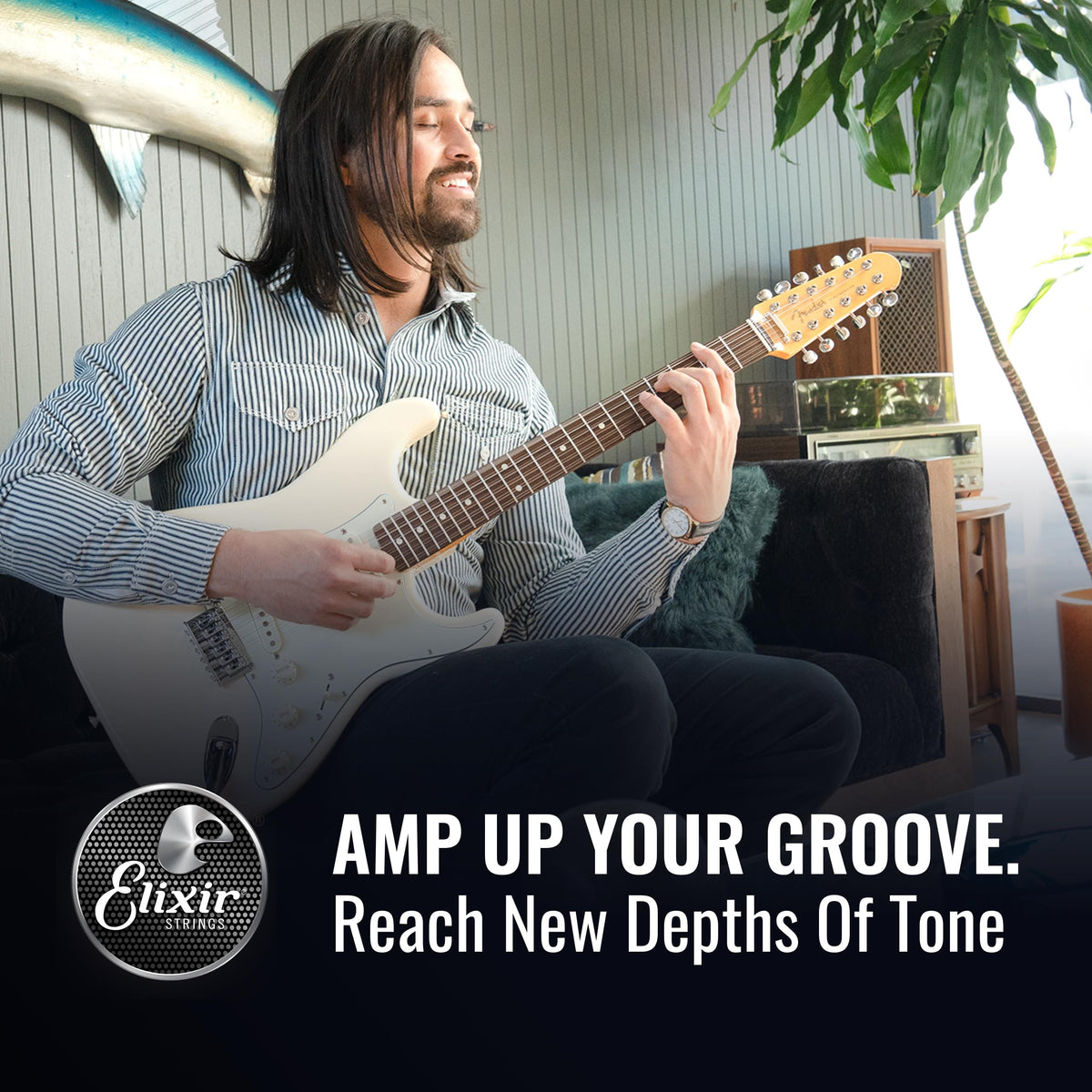 • Q: What materials are used in Elixir Electric Guitar Strings? A: Elixir Electric Guitar Strings are constructed with nickel-plated steel wrap wire, which contributes to their durability and sound quality.