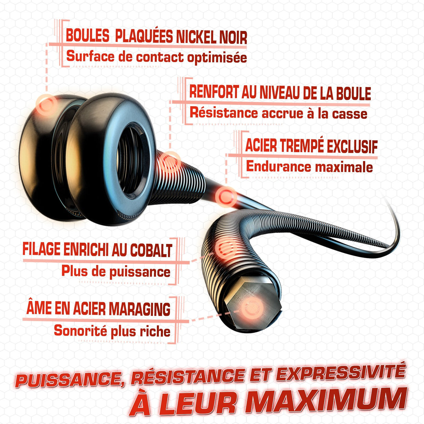 - Q: How do these strings improve sound quality? A: These strings offer superior magnetic attraction, dynamic frequency response, and a powerful low end, resulting in a richer and fuller tone.