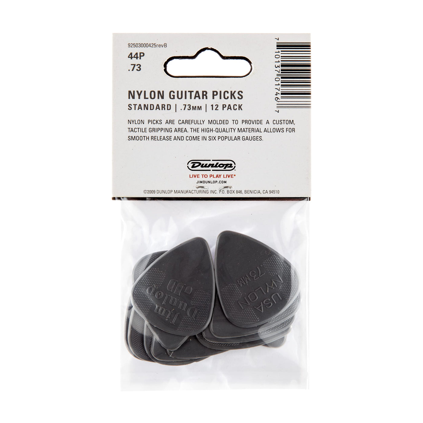 Dunlop Standard Nylon Medium Gauge .73mm 12/pkView larger Dunlop Standard Nylon Medium Gauge .73mm 12/pkView larger Dunlop Nylon StandardThe Dunlop Nylon Standard is legendary for its resilience and durability. Thinner models are perfect for acoustic strummers, while the heavy gauges provide an aggressive and heavy attack for rockers. PicksFrom Nylon to the famed Tortex and the innovative Ultex, Dunlop is the world-renowned producer of over 50 different models of picks. As a trusted creator of one of the most important tools of our industry, nobody else comes close in terms of quality, innovation, or scope. With picks available in a variety of textures, shapes, materials and artwork, we offer something for everyone'and with our custom imprint program we can produce any logo, signature, or both on the picks to make them as unique as the person requesting them. Whether you're a multiplatinum artist or a small local band, whether you play them or just collect them, you know you're getting the best. About Dunlop Manufacturing, Inc.Located in Benicia, California, Dunlop Manufacturing, Inc. was founded as a small, family-owned and operated company in 1965, and has since grown to be a leading manufacturer of electronic effects, picks, capos, slides, strings and other musical instrument accessories. Dunlop is the home of such legendary products as the Crybaby wah and Tortex picks.Features Molded tactile gripping surface The standard since 1975 Thinner gauges perfect for strumming-thicker gauges for a more aggressive, heavy attack .73mm gauge is an excellent all-purpose guitar pick The perfect choice for strumming and soloing