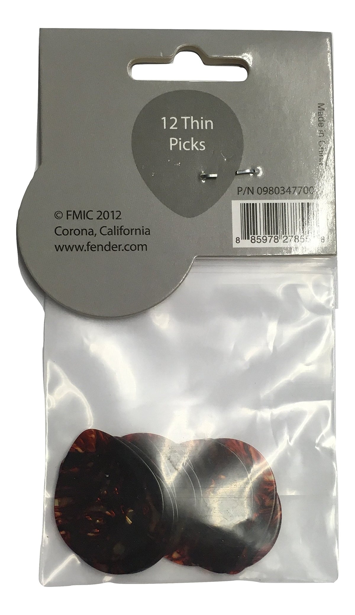 Fender Classic Celluloid Guitar Picks 347 Shape, Guitar Accessories, Tortoise Shell, Thin, 12-Pack