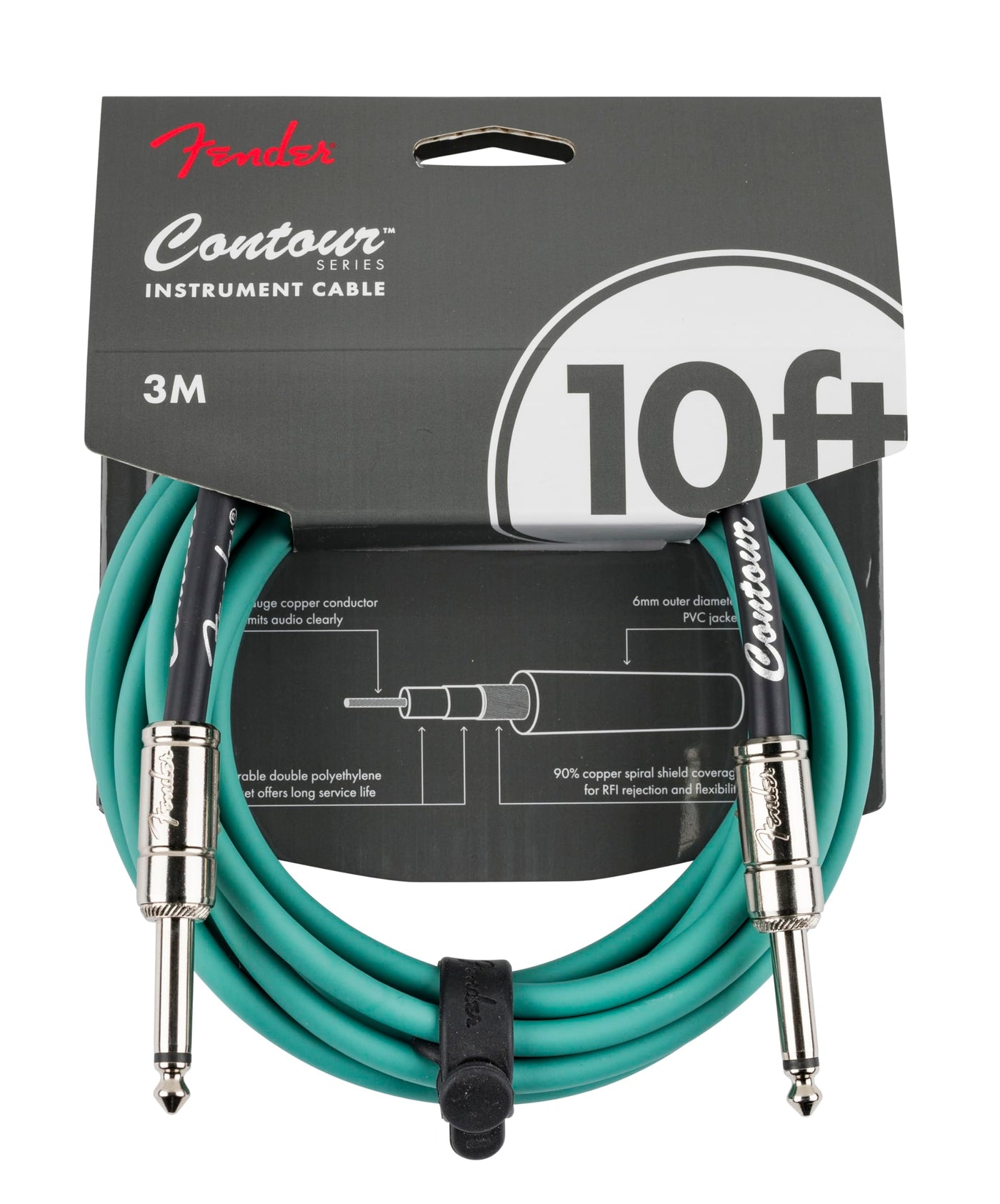 Fender Contour Instrument Cable, Guitar Cable, Guitar Accessories, Straight/Straight, Sherwood Green, 10 ft