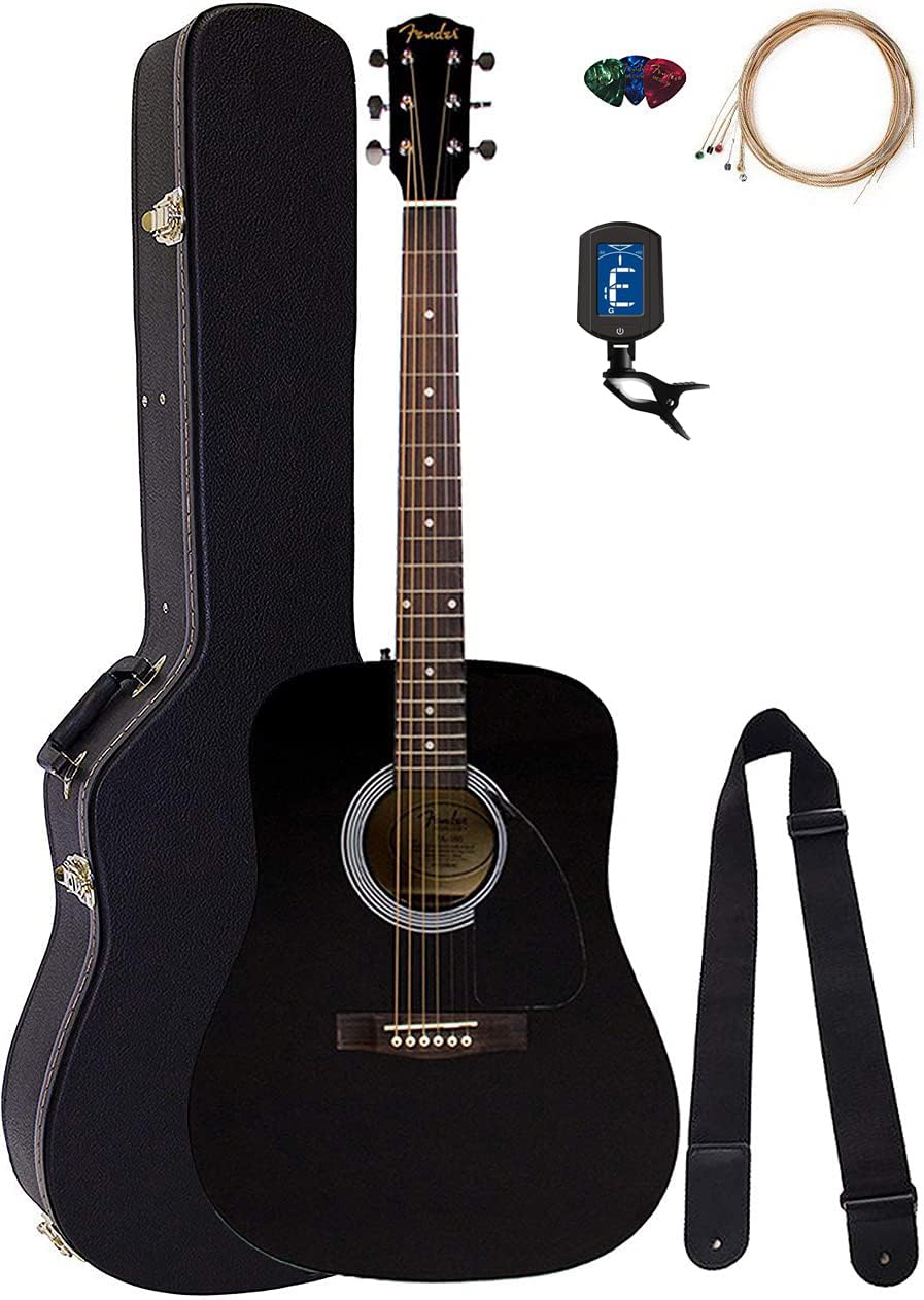Fender FA-115 Dreadnought Acoustic Guitar - Black Bundle with Hard Case, Tuner, Strings, Strap, and Picks