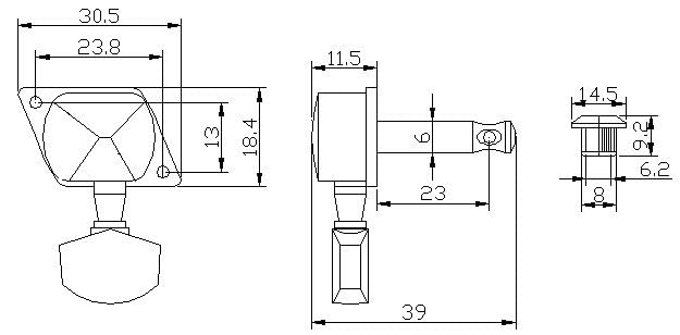 Golden Gate F-2217 Acoustic Guitar Tuners - 6 Individual (3+3) - Chrome