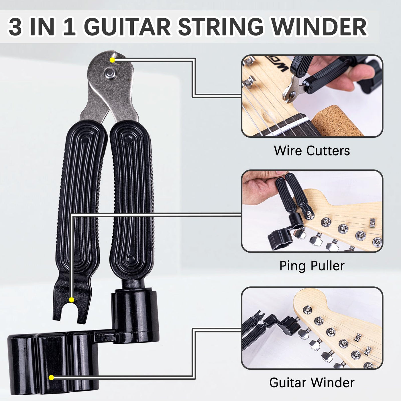 - Q: Can the guitar string winder be used for different types of guitars? A: Yes, the guitar string winder is a 3-in-1 tool that can be used for various types of guitars, including electric guitars, basses, violins, banjos, ukuleles, acoustic guitars, and mandolins.