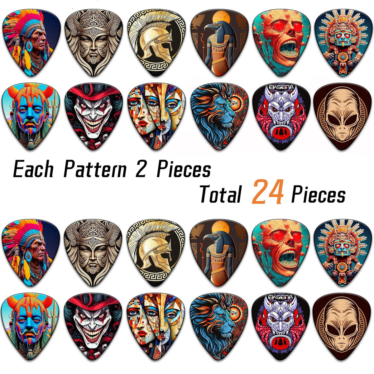 - Q: Do the guitar picks come in different designs? A: Yes, the pack includes 24 guitar picks with 12 unique artistic designs, allowing for a variety of styles to match your personal taste.