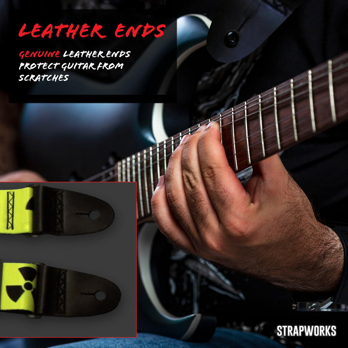 • Q: Are the leather ends of the strap safe for my instrument? A: Yes, the genuine leather ends are designed to be safe for your instrument, ensuring they won’t scratch or damage it.