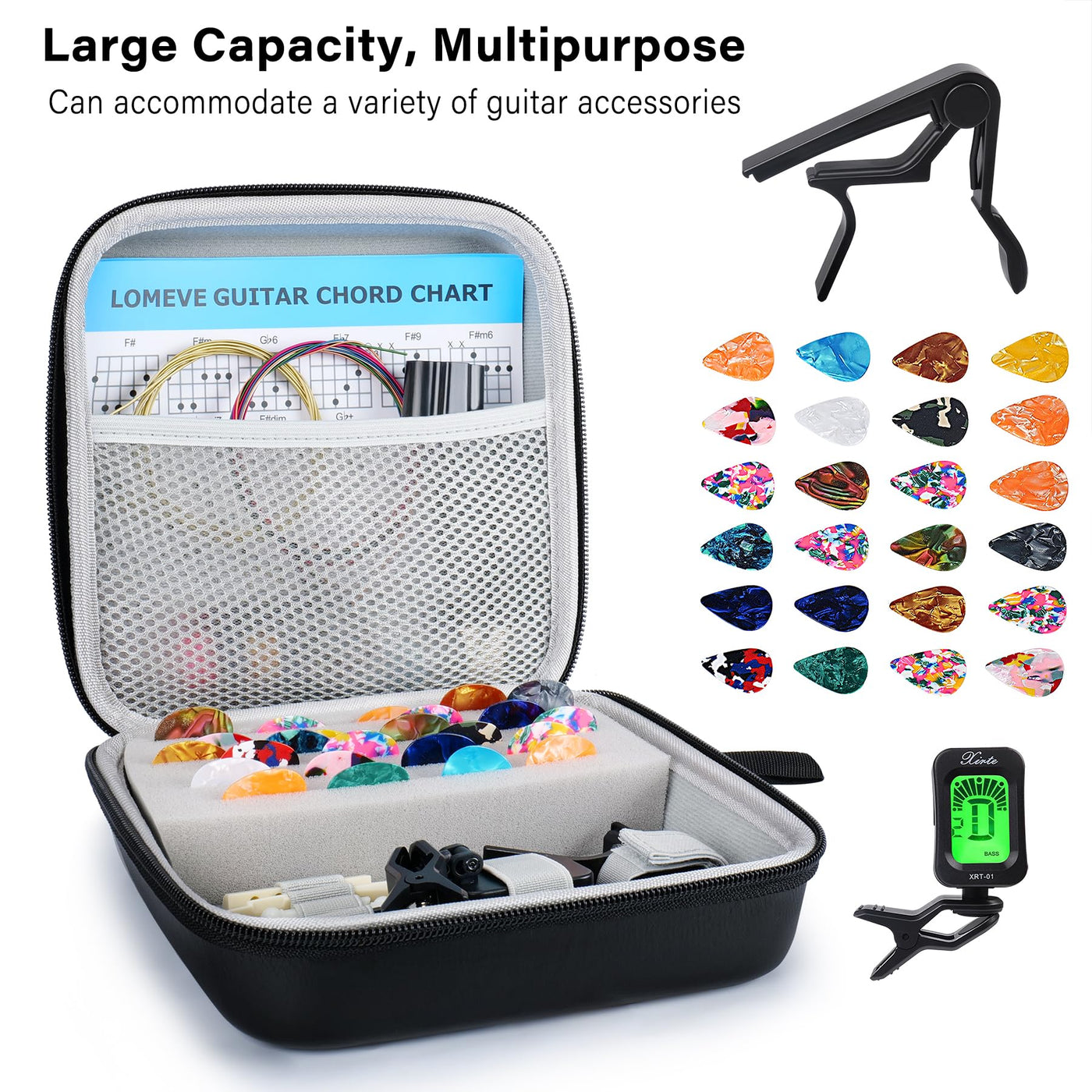 LOMEVE 85PCS Guitar Accessories Kit Holder Case Include Acoustic Strings, Tuner, Capo, 3-in-1 Restring Tool, Picks, Pick Holder,