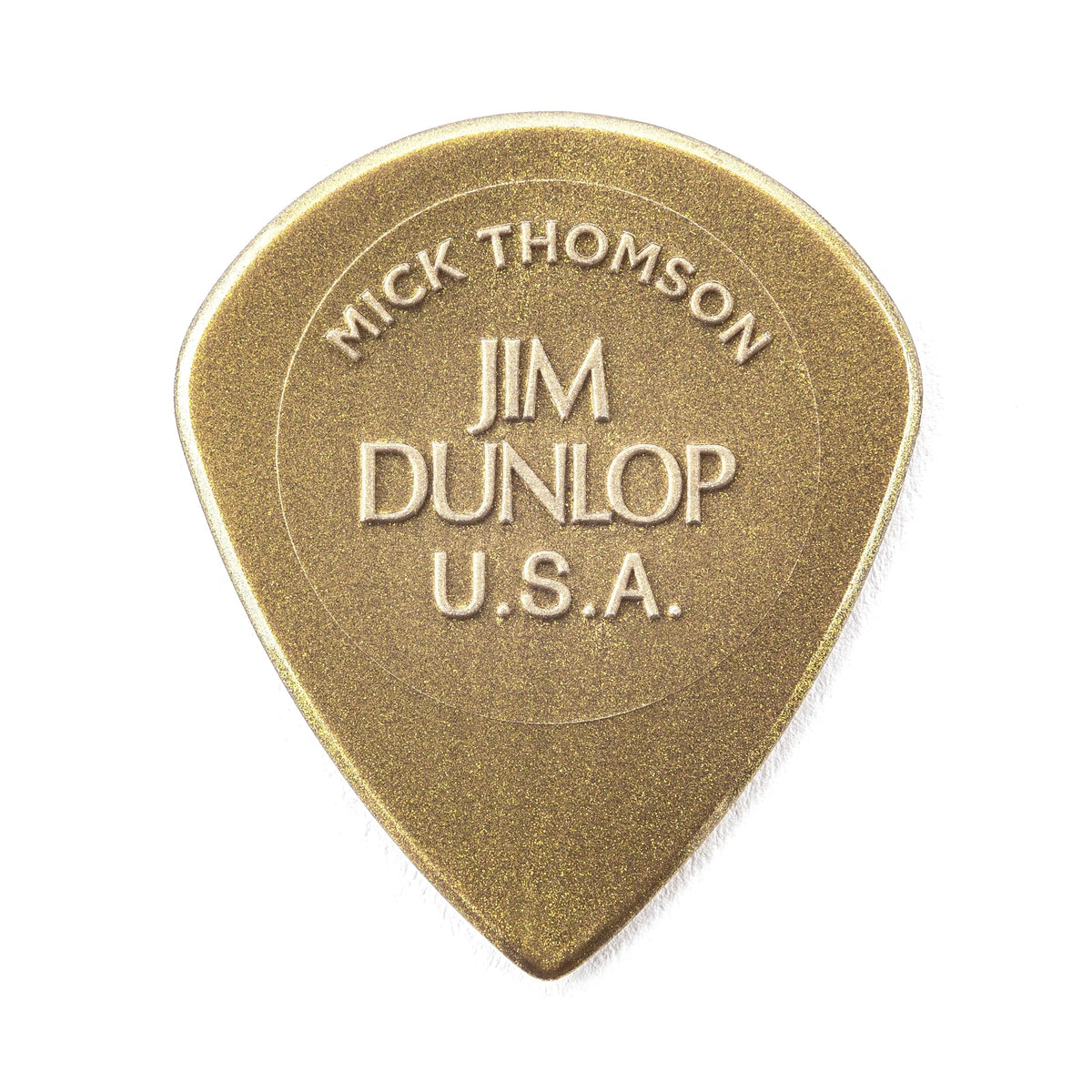 Mick Thomson uses this custom Jazz III XL Pick to shred through riffs and rip through solos-and this pick does both with astonishing aplomb. Its made from a softer nylon formula for a subtle flexibility that allows a master technician such as Mick to transition between rhythm and lead passages with ease and comfort. The tone is loud, bold, and in your face-perfect for Slipknots musical maelstroms. A raised logo gripping surface allows for just the right amount of control. Dunlop Jazz III Picks allow so much precision, and theyve been integral to my picking technique ever since junior high. This version is easily my favorite. We dialed in the nylon formula for slightly more flex, improving both tone and feel, with a grippy attack for extra control at the point of contact on the string. This pick is brighter and punchier with greater touch sensitivity and better handling-especially nice when digging in on bends.-Mick Thomson
