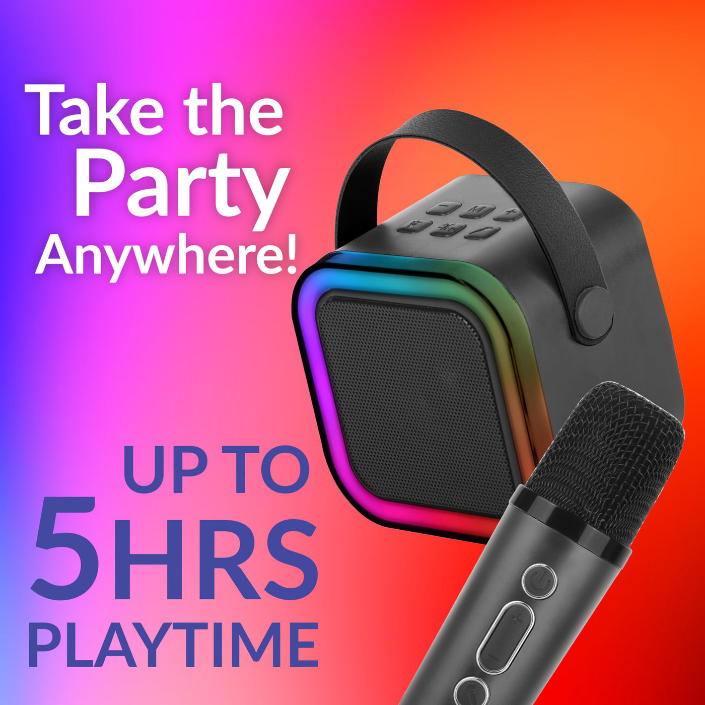 - Q: Are there any additional features for visual effects? A: Yes, the speaker includes six color-changing RGB lights that sync with the music, creating a dynamic visual experience.