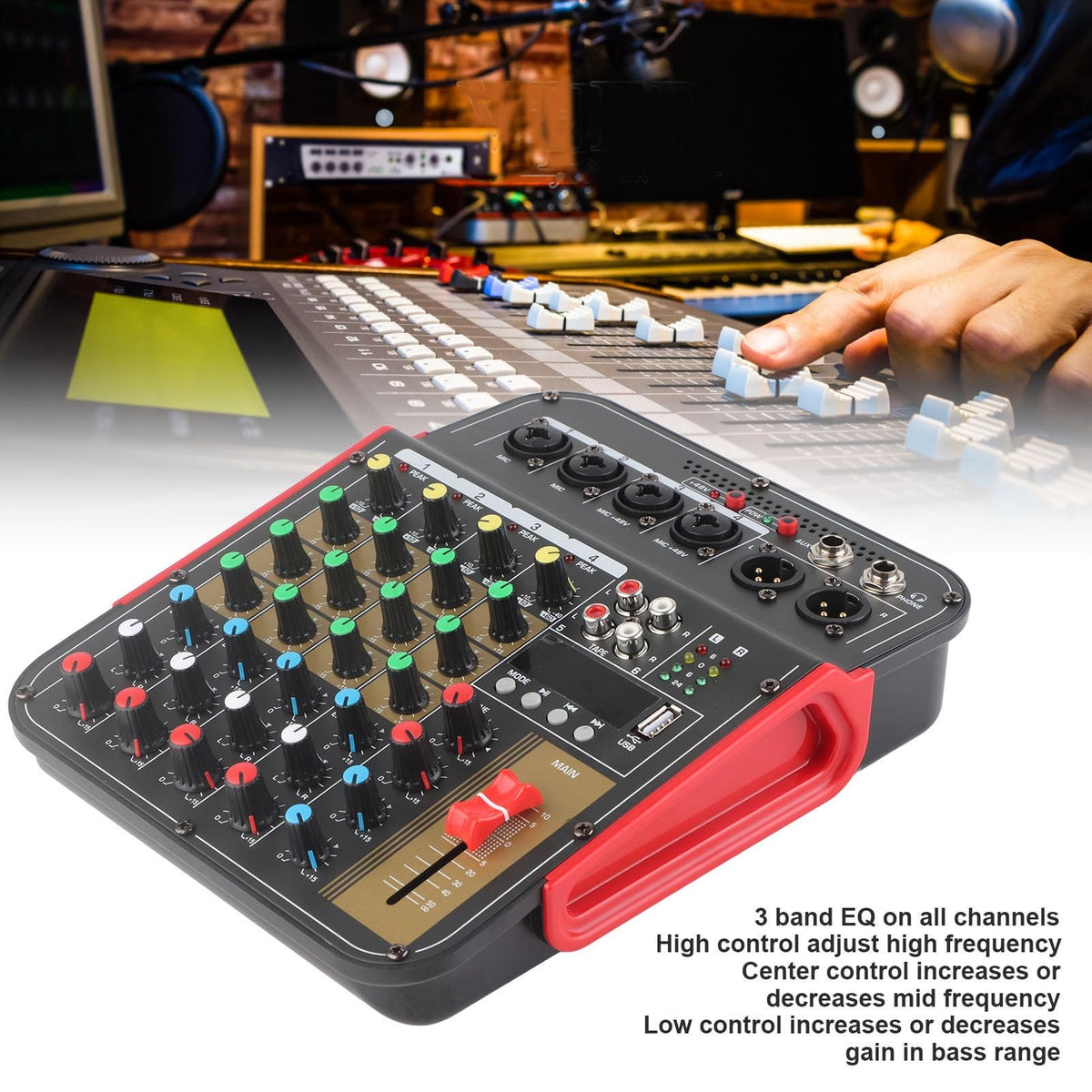 Jeanoko Audio Mixer Sound Mixing Console,Professional Mixing Console, 4 Channel Audio Mixer Controller USB Input 3 Band EQ Metal