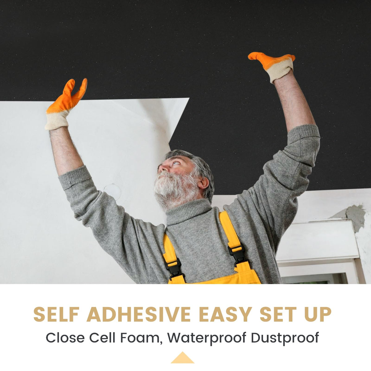 - Q: How do I install this self-adhesive acoustic foam? A: To install, simply peel off the backing of the adhesive side and press the foam onto a clean, dry surface where you want sound insulation.