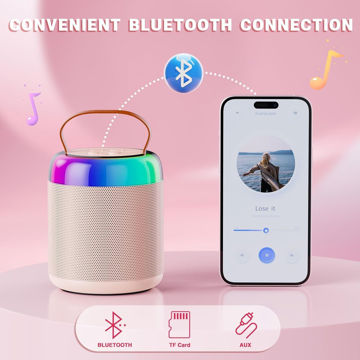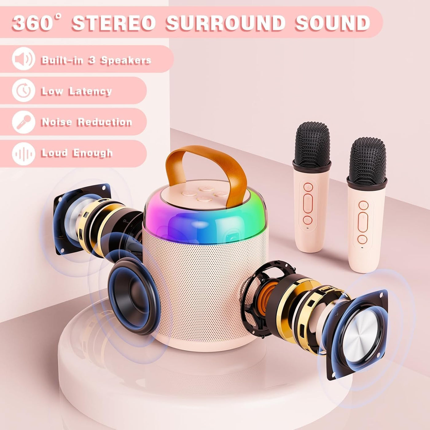 Karaoke Machine for Kids Adults, Mini Portable Bluetooth Karaoke Speaker with 2 Wireless Microphones, MP3 Music Player, Birthday