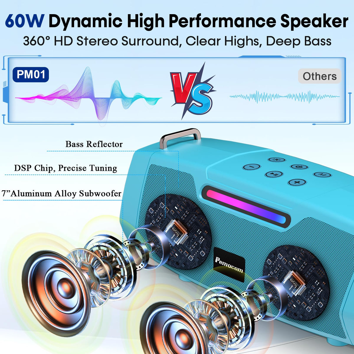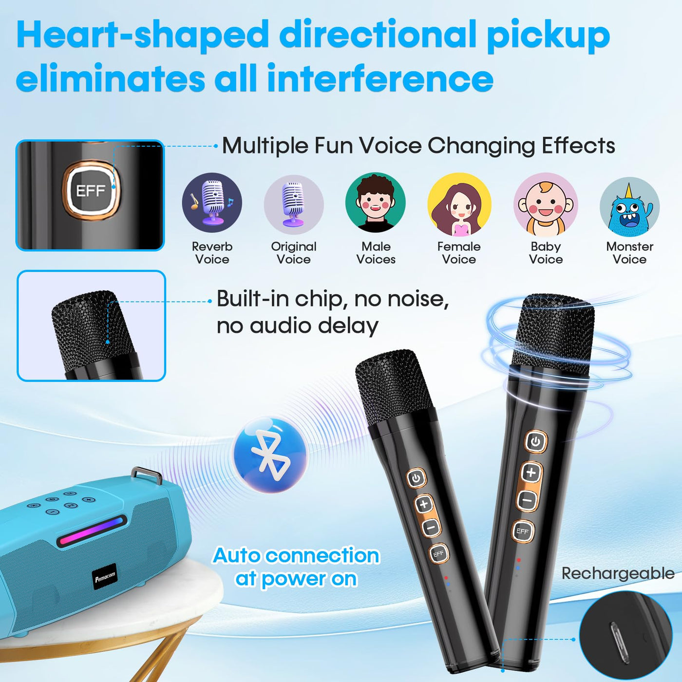 Karaoke Machine with 60W Powerful Sound - Portable Karaoke System with 2 Wireless Microphones, Bluetooth 5.3, Long Battery Life
