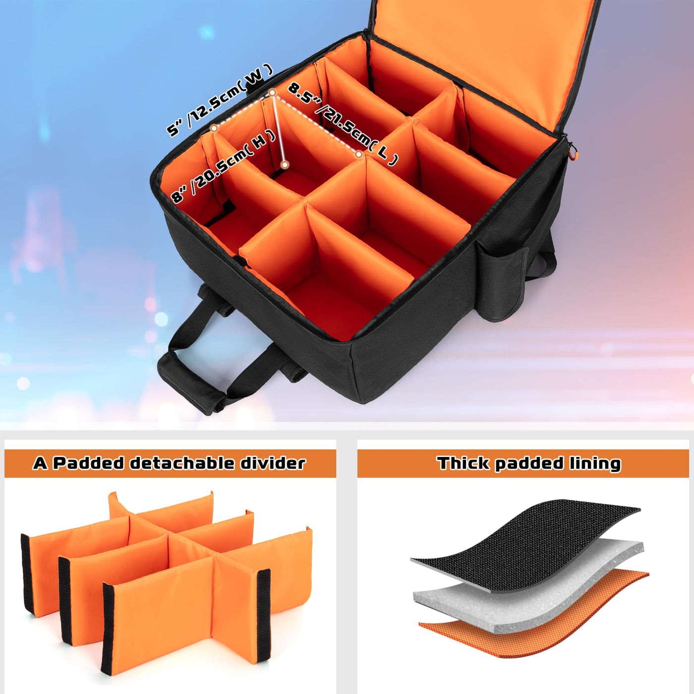 LUXJA Padded Par Bag (Backpack) Fits 8 Lights, Light Case with Inner Divider and Accessory Pockets, Black