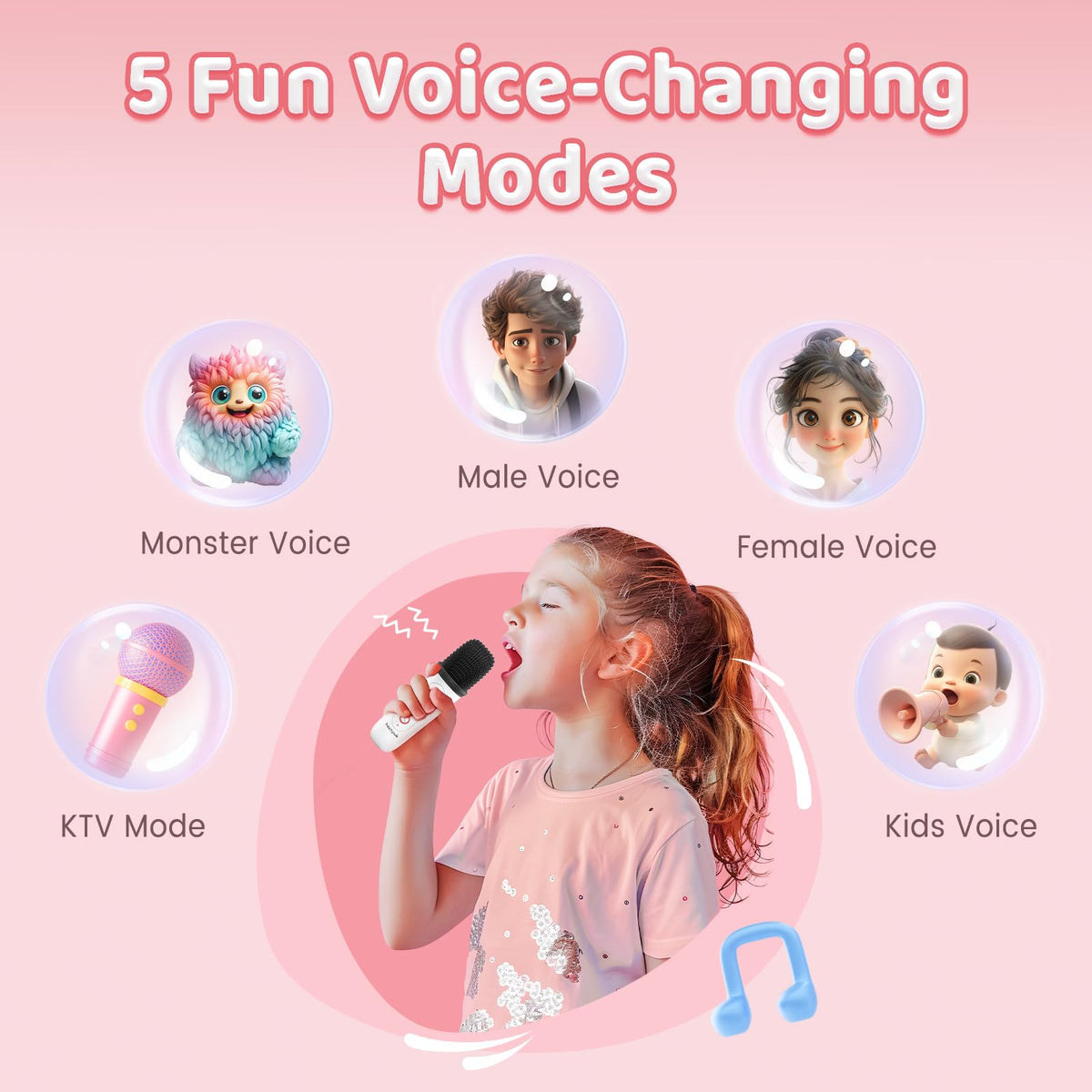 - Q: Are there any special features for kids to enjoy? A: Yes, the karaoke machine features 5 voice-changing modes (male, female, child, monster) and dynamic LED light effects that sync with the music.