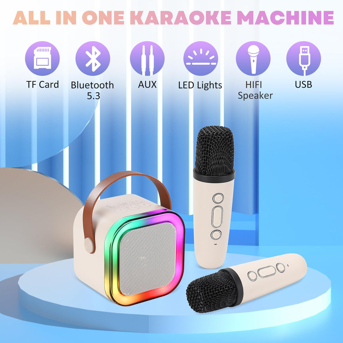Mini Karaoke Machine for Kids, Portable Bluetooth Speaker with 2 Wireless Microphones,Christmas and Birthday Gifts Suitable for