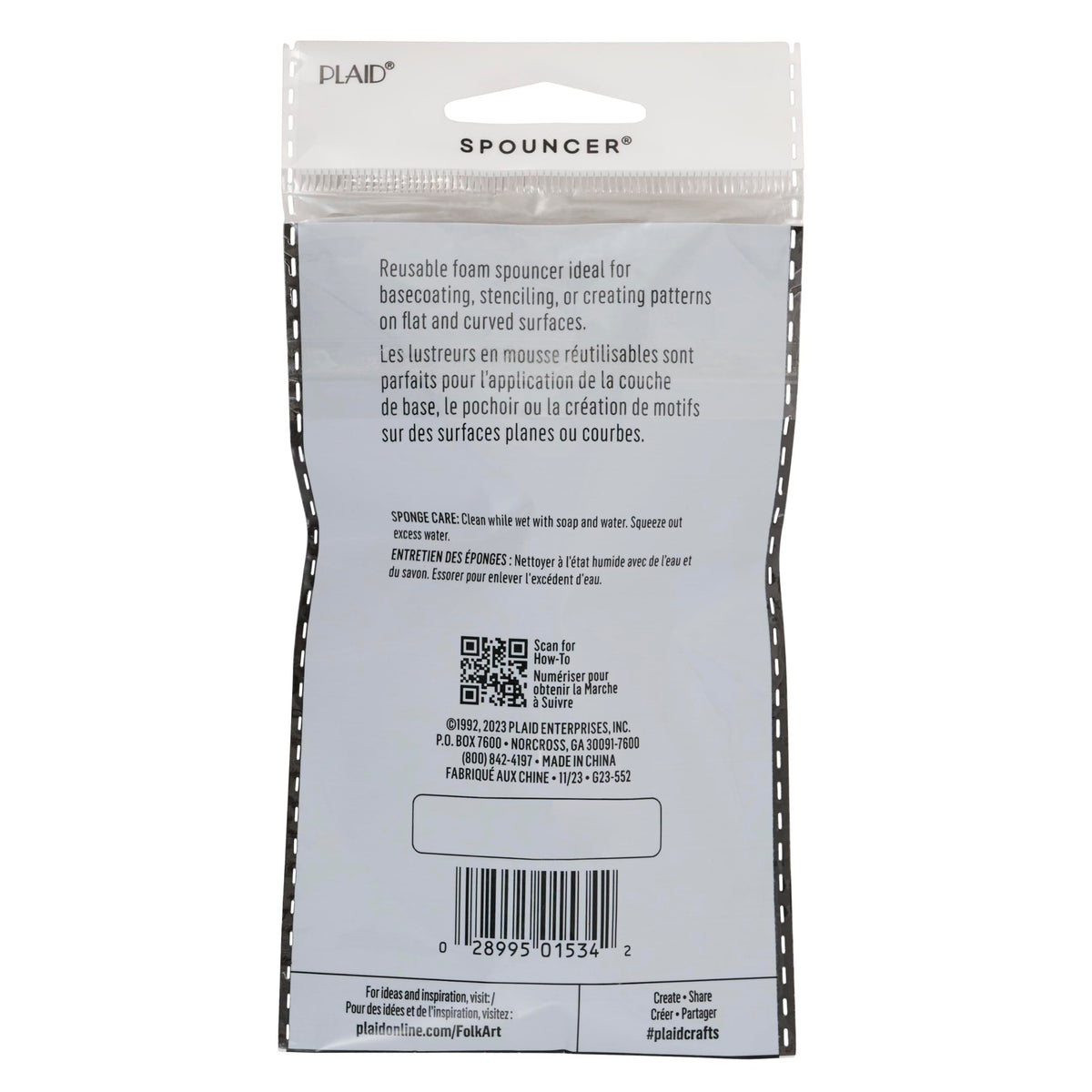 Innovative sponge on a handle. 1 1/4-inch Spouncer. Plaid -- Creative Ideas Made Easy. Plaid is one of the world's largest, most diverse manufacturers of creative do-it-yourself products. Innovative products and dedication to the ever-changing needs of consumers have made the Plaid family of products among the most recognized and desired brands worldwide. The company continues to evolve with the craft industry, developing products in tune with trends --- stenciling, faux finishes, fashion, glass crafts --- reaching out to new artists and markets, including home improvement. Plaid was also the first craft company to sell products on television via infomercials and home shopping channels. Notable brands in Plaid's portfolio include FolkArt, Gallery Glass, One Stroke, and one of the industry's best known, Mod Podge, a favorite since 1967. In 1996, Bucilla, the nation's needlecrafts leader, was added to the Plaid family. Today, Plaid remains true to its roots, leading the way and setting standards for craft products, programs, marketing, inspiration and education.