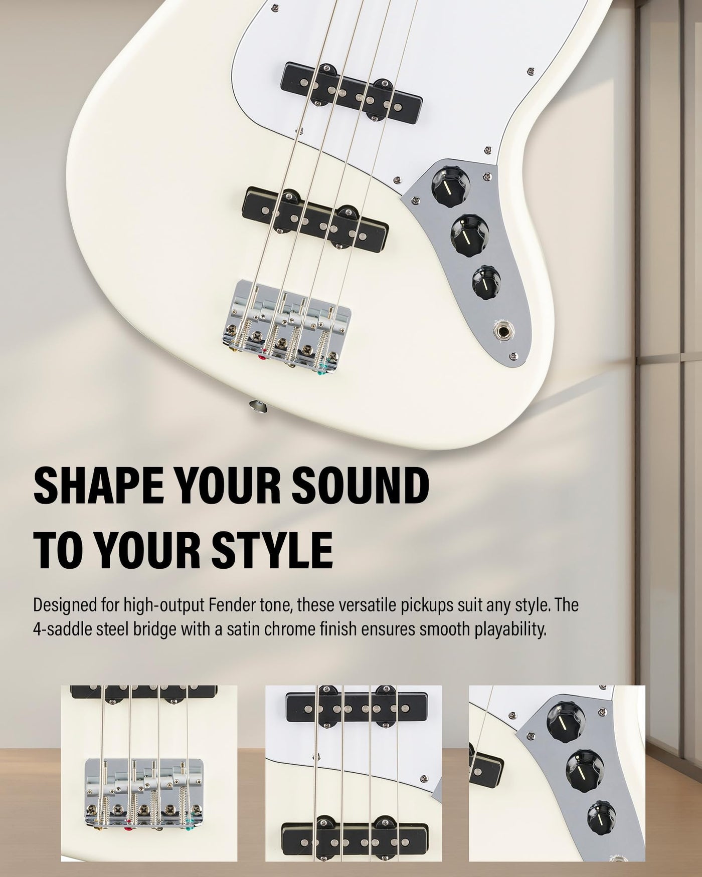 Fender Standard Jazz Bass - Olympic White Bundle with Strap, Guitar Cleaning Kit and Austin Bazaar Instructional Video