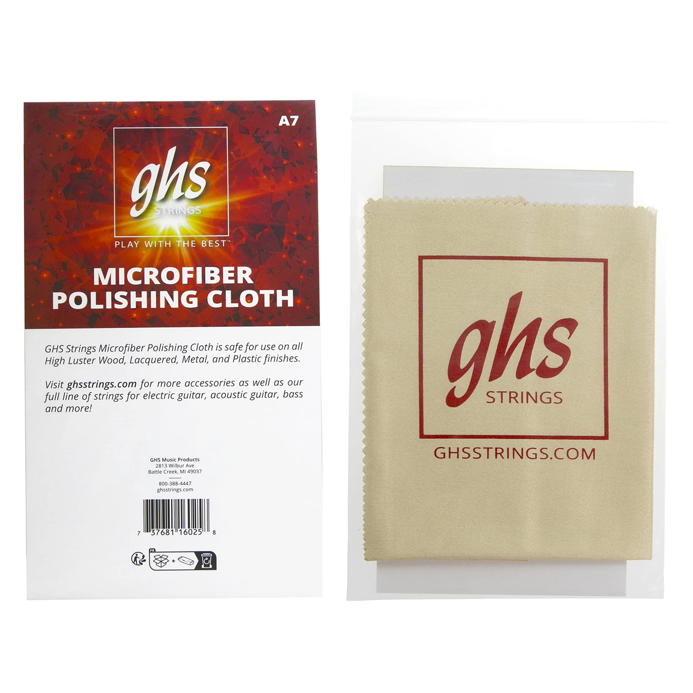 • Q: What is the GHS Strings GHS POLISHING Cloth made of? A: The GHS Strings GHS POLISHING Cloth is made from 100% pure flannel, which is soft and effective for cleaning instruments.
