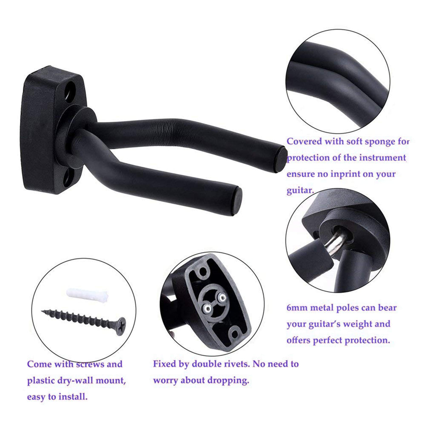 Guitar Wall Mount Hanger 2 Pack Black Guitar Hanger Wall Hook Holder Stand Display with Screws - Easy To Install - Fits All Size