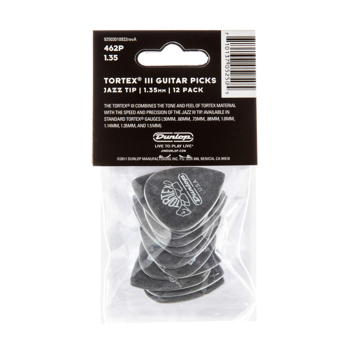JIM DUNLOP 462P1.35 Tortex TIII, Black, 1.35mm, 12/Player's Pack