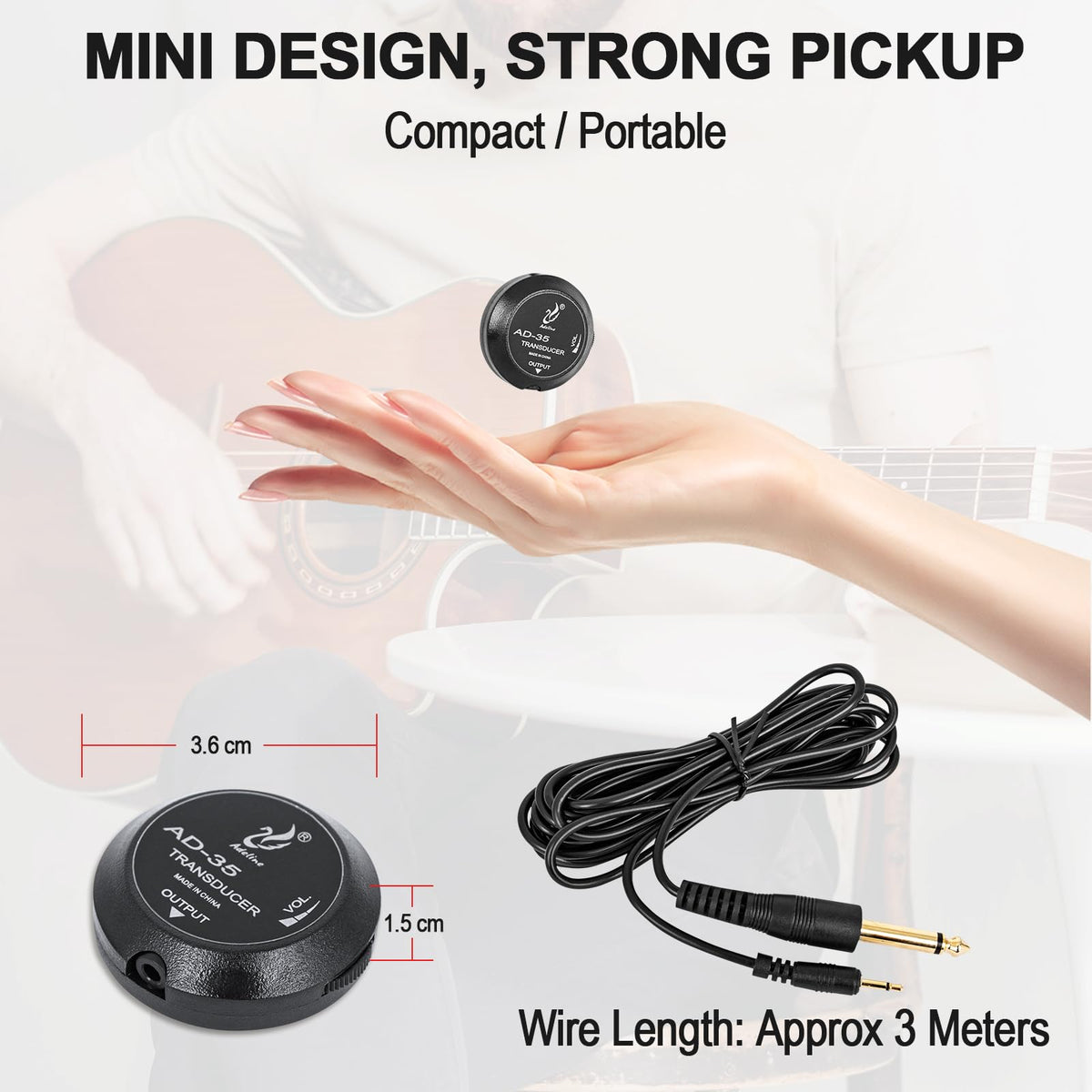 MUZTOP Guitar Pickup with Volume Control, Piezo Pickup Contact Microphone Transducer Pickup for Acoustic Guitar, Violin, Mandoli