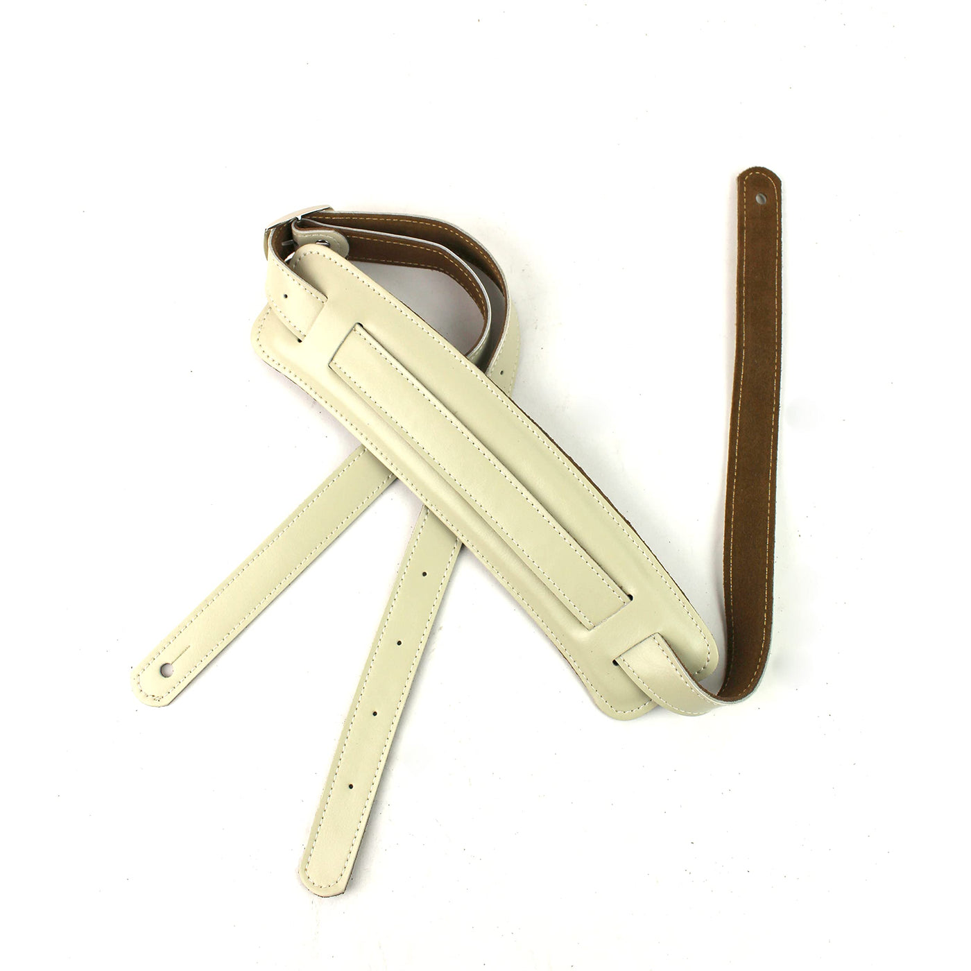 Walker and Williams C-19-WHT Aged White Premium Soft Grain Leather Vintage Slash Guitar Strap With Deluxe Suede Backed Pad Extra