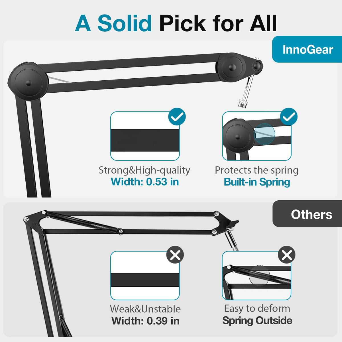 - Q: What materials is the microphone stand made of? A: The InnoGear microphone stand is constructed from durable alloy steel, ensuring stability and longevity.