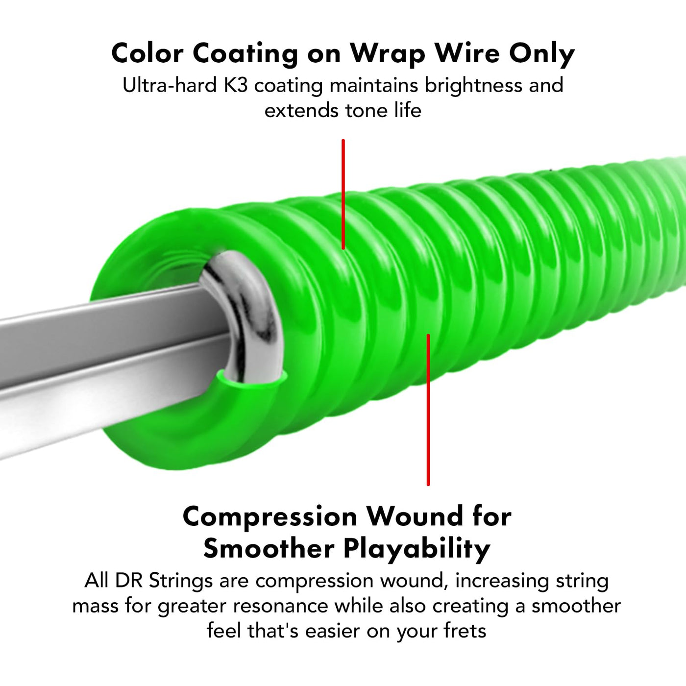 - Q: What are DR Strings HI-DEF NEON guitar strings made of? A: DR Strings HI-DEF NEON guitar strings feature a nickel-plated wrap wire with a proprietary K3 coating, which enhances durability and maintains brightness.