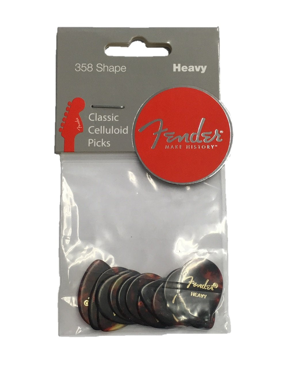 Fender 358 Shape Classic Celluloid Picks (12 Pack) for electric guitar, acoustic guitar, mandolin, and bass