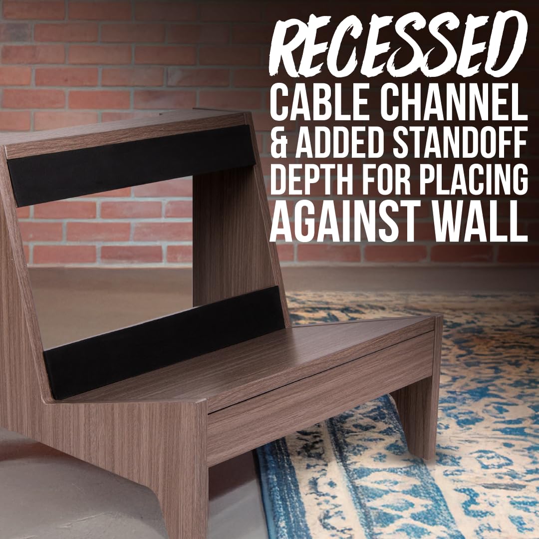 - Q: Can the amp stand be positioned flush against the wall? A: Yes, the design includes a recessed cable channel and added depth, allowing for optimal wall placement without compromising aesthetics.