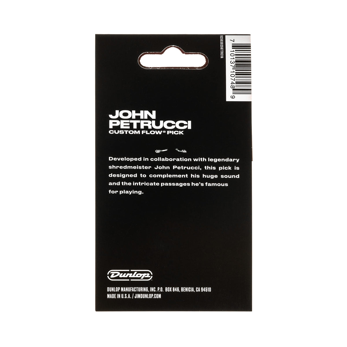 • Q: What are the dimensions of the Jim Dunlop John Petrucci Flow 2.0 mm guitar picks? A: The Jim Dunlop John Petrucci Flow picks are 2.0 mm thick, providing a sturdy feel for guitarists.