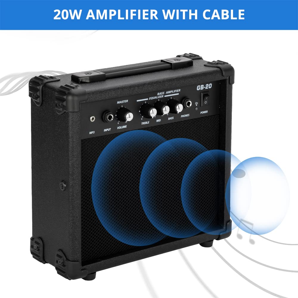 Ktaxon 4 String Electric Bass Guitar, PB-Style Full Size Standard Right Handed Beginner Kit with 20W AMP, Gig Bag, Strap, Upgrad